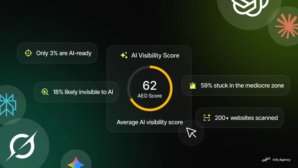 The 211-scan dataset confirms what Inity Agency suspected when building AEO Checker: most websites are operating in a visibility gap that traditional optimization tools don’t measure and traditional SEO frameworks don’t address. The average score of 61.9 isn’t a failure of web development – it’s a predictable result of building for the old standard while AI engines operate on new requirements. The 4 failure patterns – incomplete schema, blocked crawlers, unstructured content, weak entity clarity – are fixable. None require a rebuild. They require knowing where to look.